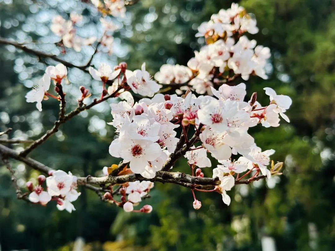 李子花、垂丝海棠在 友谊路上远望花团锦簇,近看粉淡如脂。娇媚地挂在枝头,构成一幅诗情画意的春,游人自己也成了诗里的一道风景。