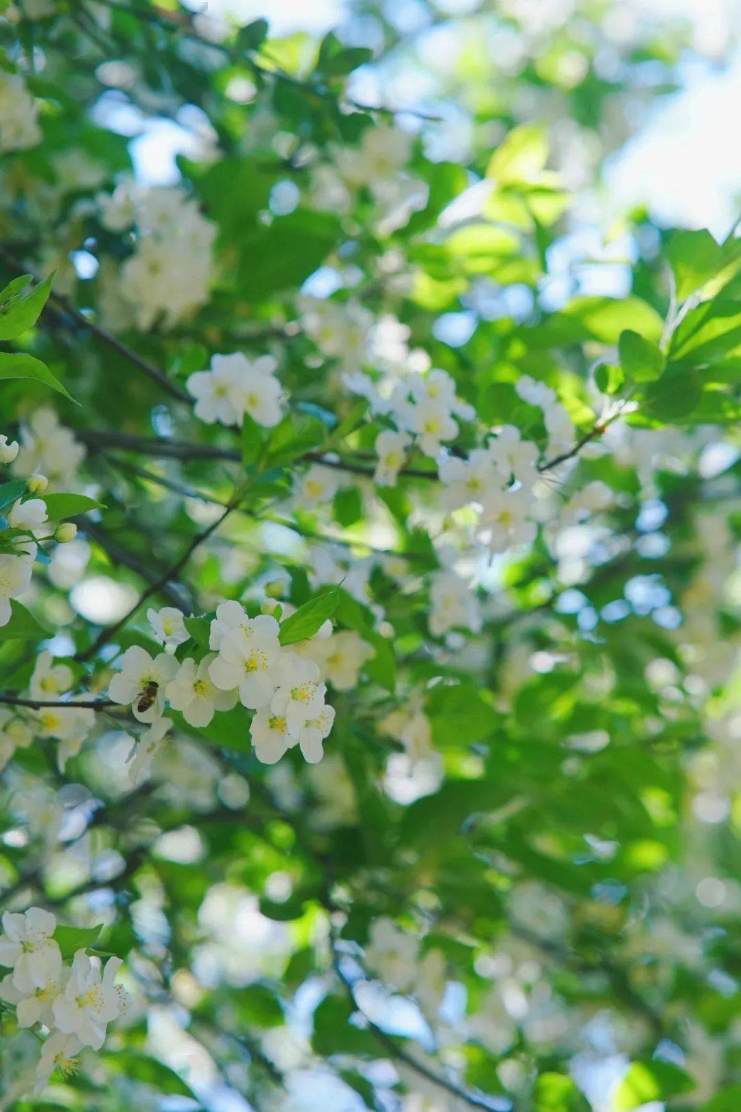 树上汲蜜的松鼠,伸出肥润的小手惹下落英,蜜蜂和蝴蝶也来凑热闹,鸟儿唧唧啾啾,在春天的指尖弹跳协奏曲。