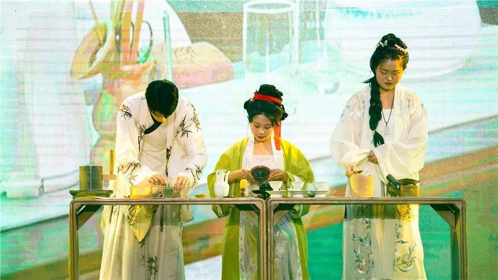 推荐官李龙源出场,为大家带来了精彩的舞蹈《千年回眸》。随后,推荐官李玉权与嘉宾周俊成、朱浩宁一起演唱了歌曲《星辰大海》,现场荧光棒挥舞,十分震撼。音乐舒缓悠扬,推荐官张健林、丁苗苗、骆华艺、韩佩芸、秦岚、张朝琼、李虹帛同时登台,在张健林悠扬的古筝声中,点茶、泡茶、煮茶、长嘴壶茶艺、插花、磨茶,同台上演了精彩的《时光煮茶》。