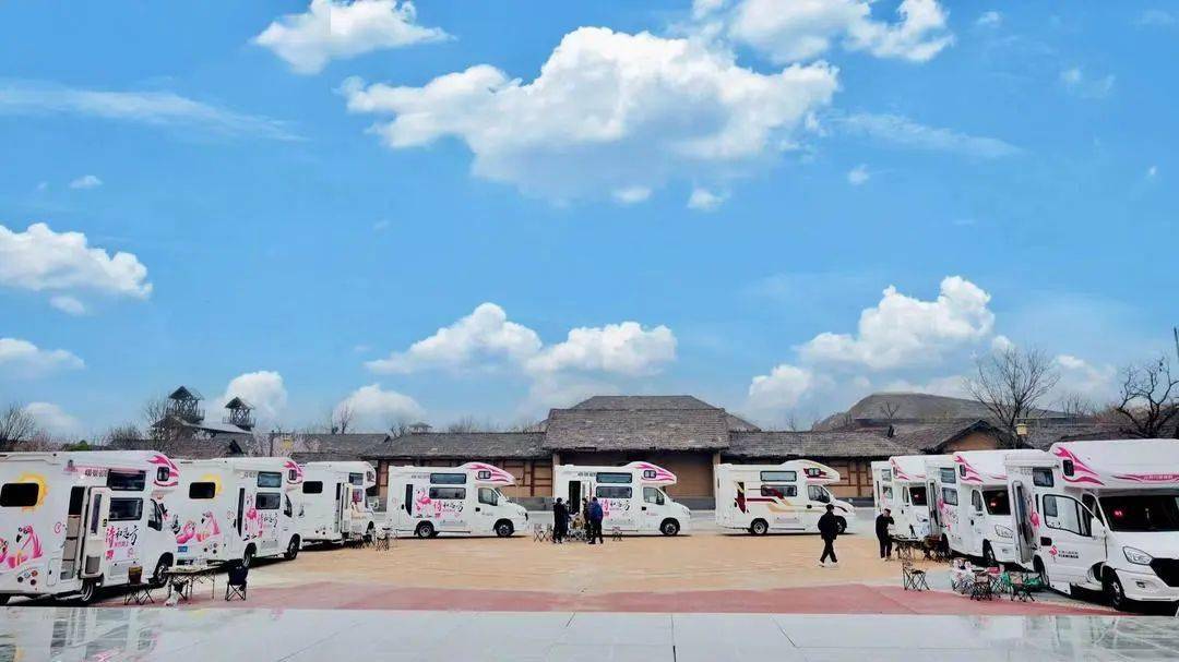 来到陕西省跳水馆的取车处,一排排房车停放整齐,天气晴朗,现在出发~