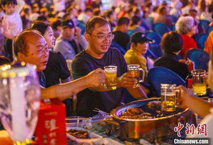 6月10日晚,在山东省荣成市那香海景区,民众逛夜市、赏表演、喝啤酒、品美食,尽享夏夜休闲好时光。
