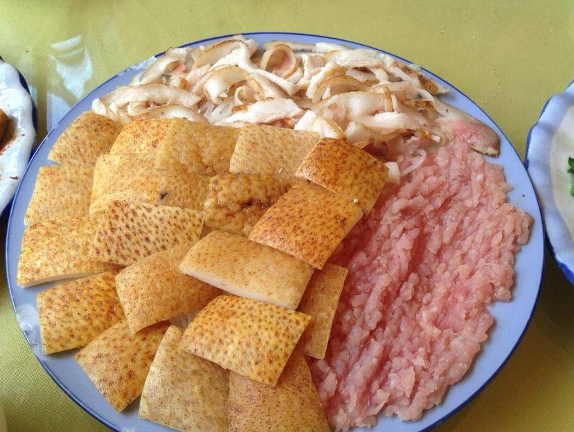 生皮可以称得上是云南人最喜欢的一道菜了,但是外地人却没几个人能吃的习惯,这算得上是云南人眼中的美食,外地人眼中的灾难,所以经常被外地人称作是云南的奇葩特色菜。而小马就是想体验一下云南的风土人情和特色美食,所以点了这道菜,刚开始的时候还吃不习惯,但是几块下肚后,不禁喜欢上了这种奇妙的味道,酸辣鲜美。