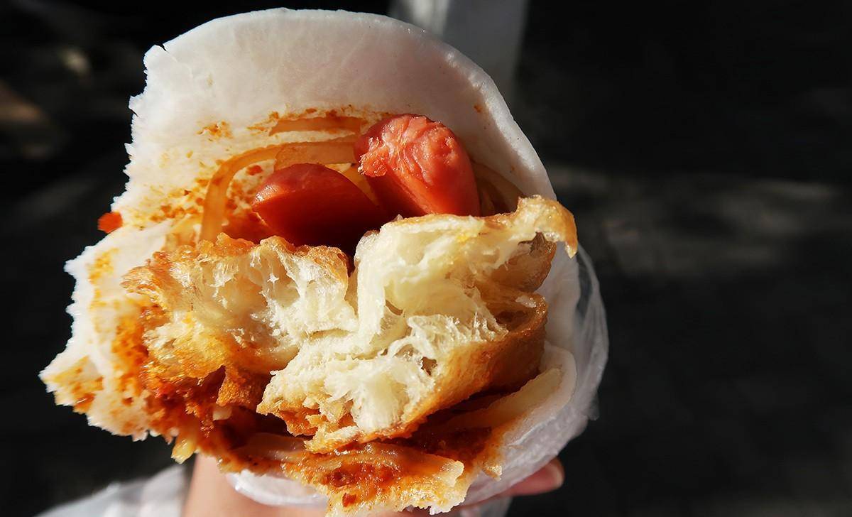 烧饵块算得上跟北方的卷饼有点像,由于外面的是饵块并不是面饼,所以吃起来味道要比北方的卷饼味道要鲜美一些,里面可以夹一些自己喜欢的菜码,有油条、鸡蛋和土豆丝,在秘制的酱料的搭配下,整个烧饵块的味道格外鲜美。