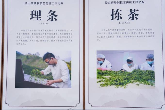 手工炒制径山茶的方法传承了传统的制作工艺,采茶、摊青、炒茶、揉捻、烘焙,是径山茶炒制技艺中最主要的五个步骤,缺一不可。