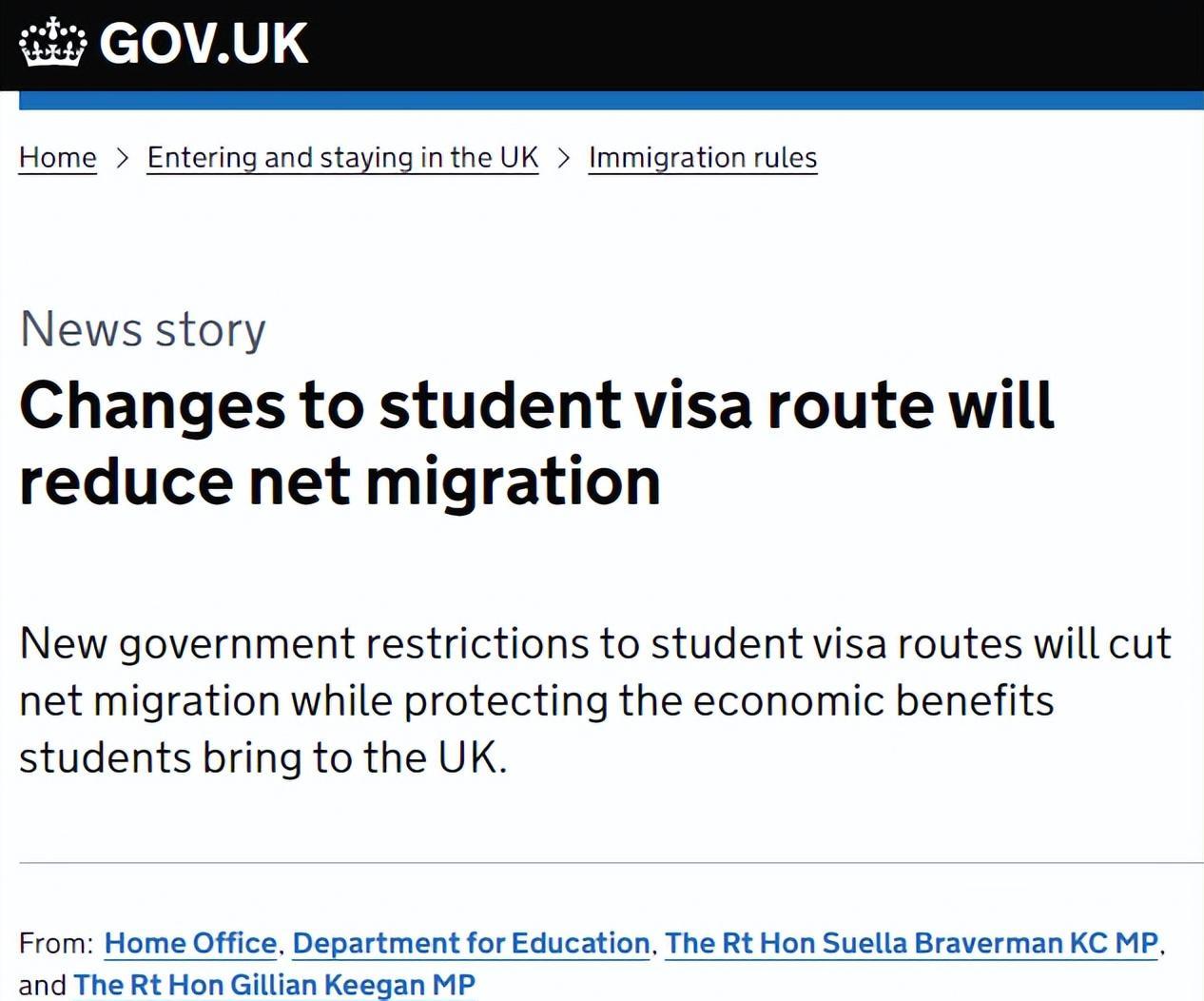 官方是发布了这样的新政,但粗暴上升为移民政策收紧毫无疑问是断章取义。原因正如英国移民大臣布雷弗曼所述:那些来自尼日利亚和印度的留学生,利用家属陪读签证政策,拖家带口来英国生活。一个留学生居然能带“6个陪读家人”到英国,如此庞大的家属群体并不会为英国经济做出足够贡献。
