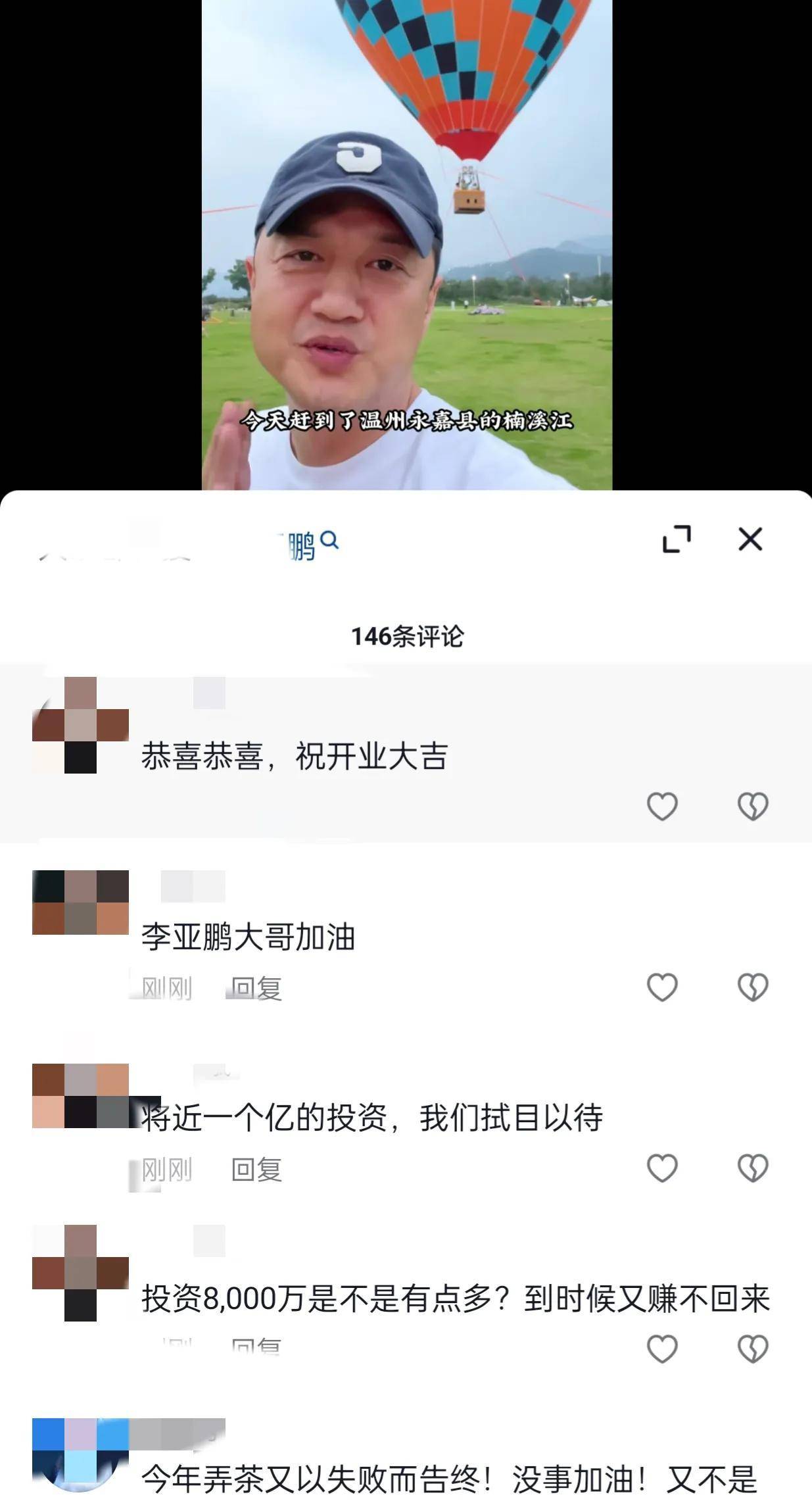 著名演员李亚鹏4月6日在温州永嘉县楠溪江上发布视频,告诉网友,他8000万元的露营营地已经投资今天终于开业了!人潮汹涌,房车营地的装备全是进口的。既然没时间,就跑来泡茶,想把露营营地让给别人!亏损5000万转让。
