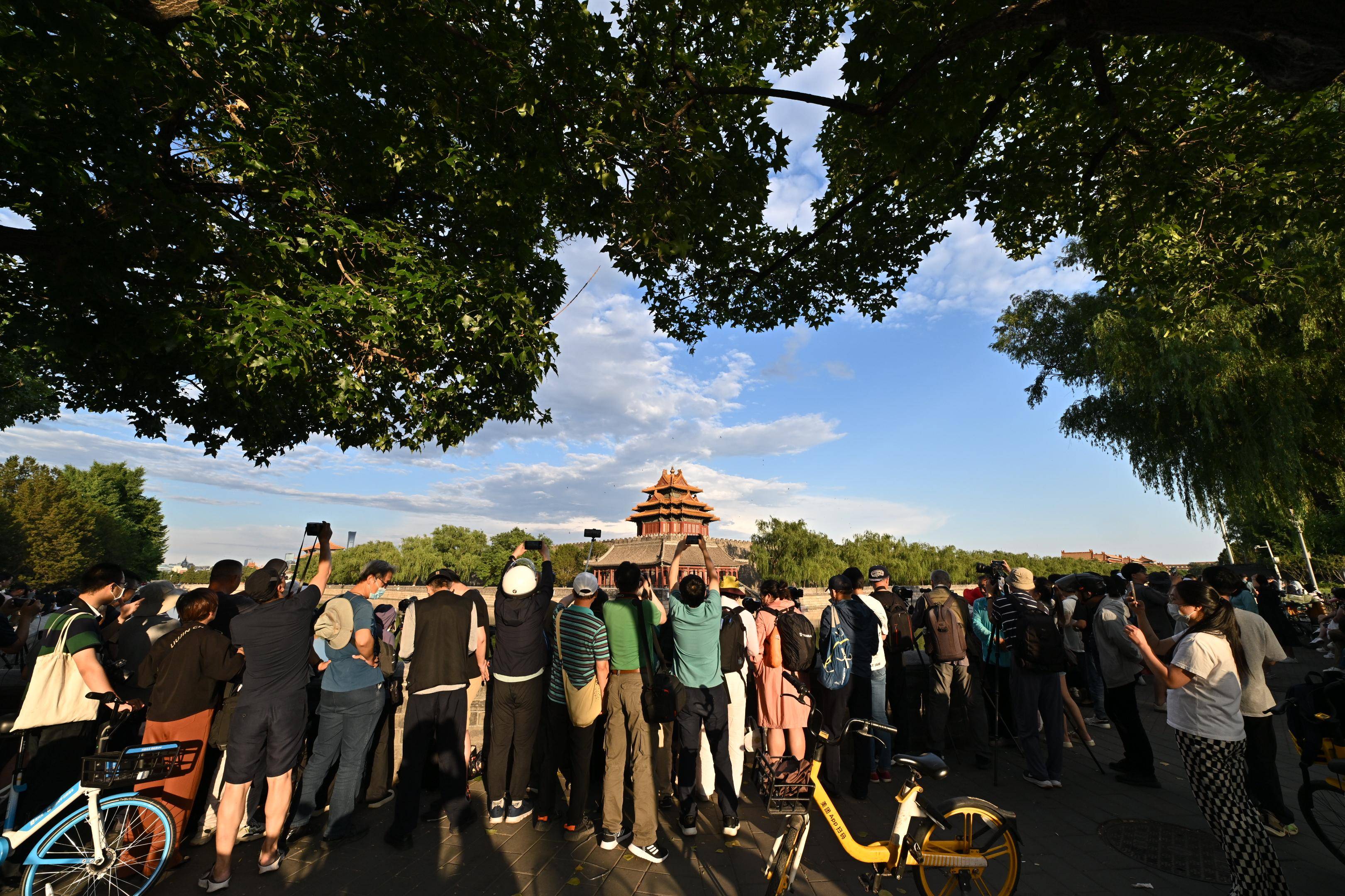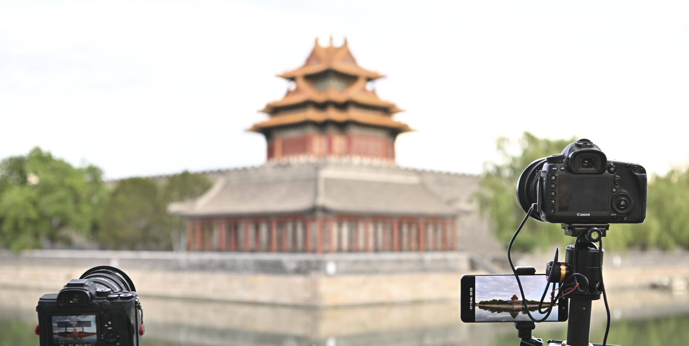 6月11日,摄影爱好者使用相机和手机拍摄北京故宫角楼。 新华社记者 李鑫 摄