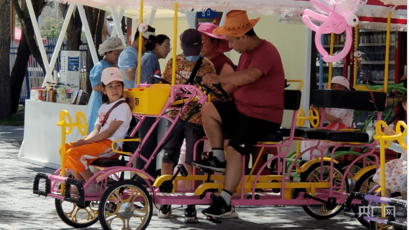 游客骑乘观光脚踏车 (央广网发 水墨沟区融媒体中心供图)