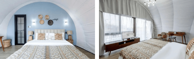 除了外部设施以外,想沉醉在新疆的山野里,住宿条件也是重中之重,因此营地公园准备了各种各样的房间供来往的旅人们居住。