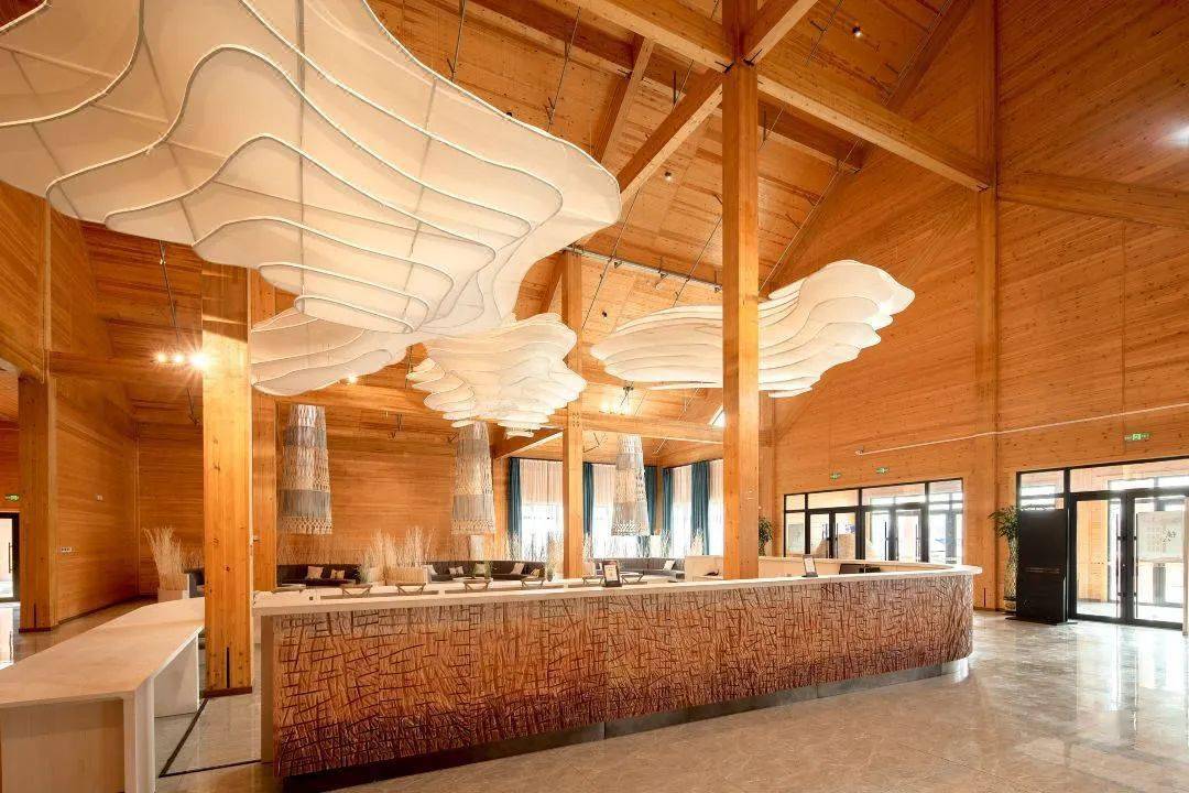 整体营地装潢偏复古实木系风格,游客接待中心复古中不失典雅和雅致,给你在旅行体验中沉静安逸的休息环境。