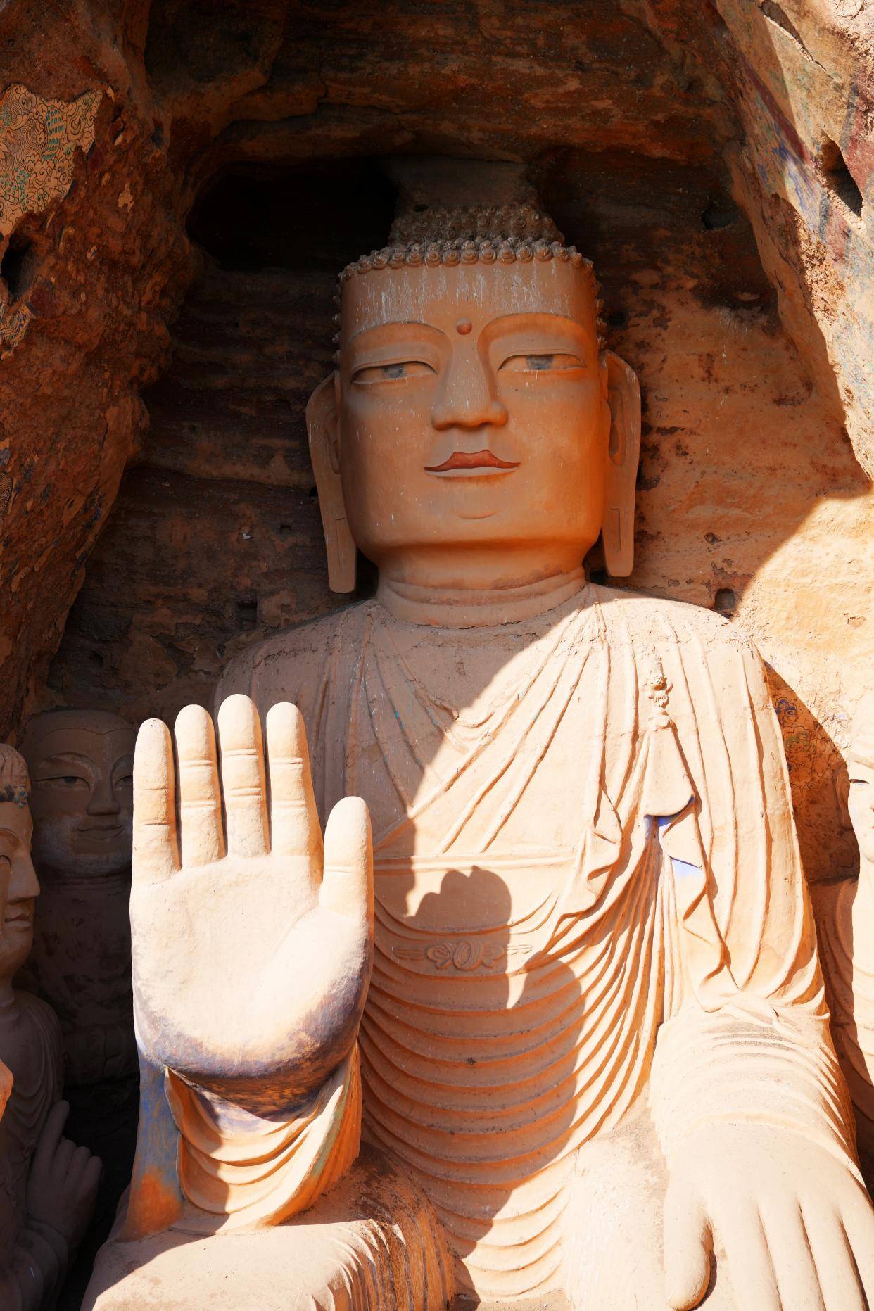 古人的智慧往往超出我们的想象,我们眼前的主尊释迦如来坐佛高28米、宽10米,神态庄严,这些宏大精美的雕塑,是雕塑家们智慧和艺术的结晶。和大佛面对面,彷佛时光穿越了到了那远古时期,石窟艺术凝聚了深厚的宗教感情,体现了鲜明的时代风尚,展示了一段完整的历史画卷,直到今天,很多雕刻精美的石窟造像,依然是现代人所无法模仿的。