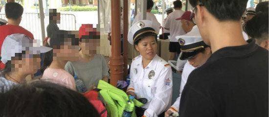 因随身携带了一大袋包括寿司、面包等食物,一家四口只能站在安检边上,狼吞虎咽吃掉尽可能多的食物。父亲一边吃一边叹息说,第一次来乐园,并不知道禁带食物的规定。刚在地铁口买的食物就这么扔掉,太浪费了。