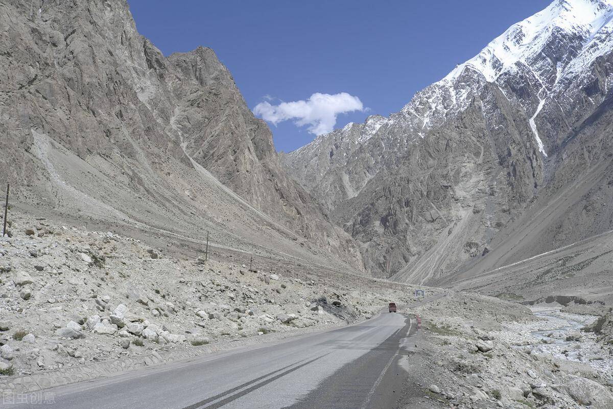 行驶在喀喇昆仑山与昆仑山脉之间的河谷之中,这里的山体支离破碎,相对于之前的行程更为干燥,两侧的山体也变得苍凉壮阔。走到河谷尽头,就将翻越昆仑山,进入新疆的塔里木盆地。