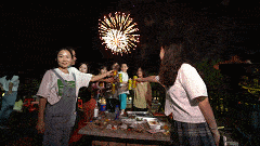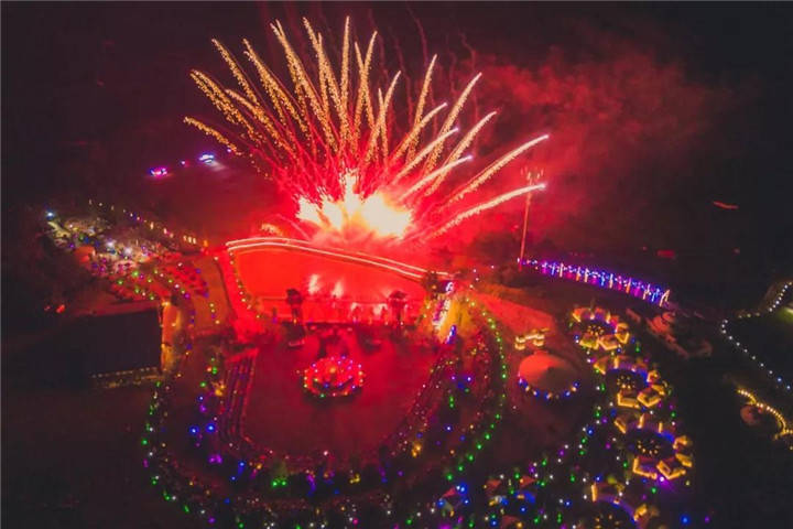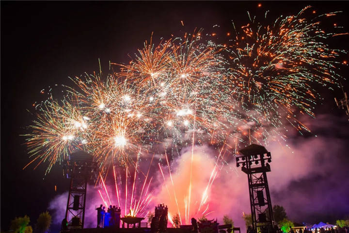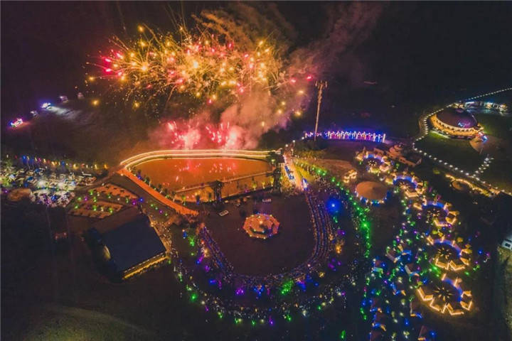 到了夜晚,广袤的草原又呈现出另外一种风情。绚丽的烟花此起披伏争奇斗艳,木兰草原的夜空被璀璨的光芒划破,形成一片花海,随着烟花五彩斑斓的焰火,全场的灯光也舞动起来。