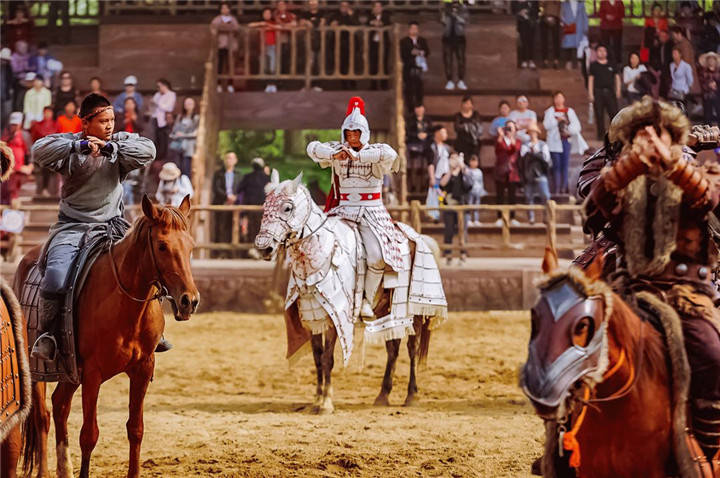 来木兰草原,必看《云中战歌》。大型实景演艺《花木兰•云中战歌》由木兰草原景区斥巨资打造,糅合了场景爆破和马术打斗的表演,再现花木兰戎马传奇。