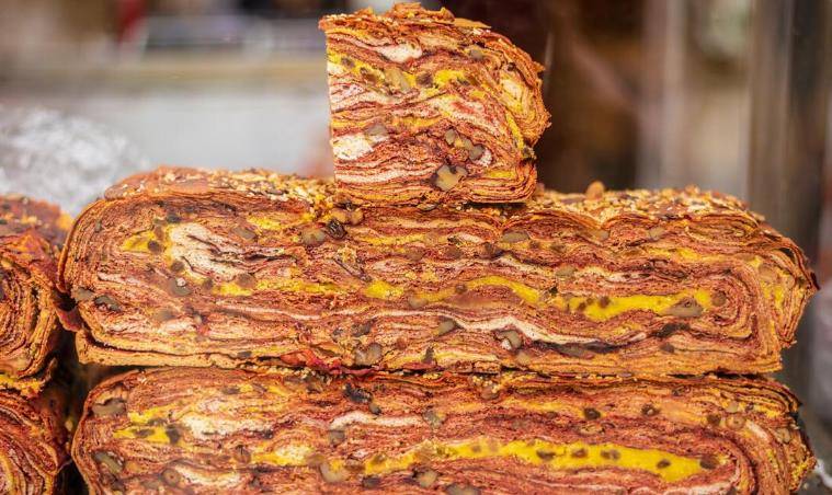 天价切糕的消息频出到底是怎么一回事呢?更是有网友开玩笑说自己开奔驰不小心把路边的切糕车给撞了,最后奔驰都赔给人家了,那切糕为什么那么贵呢?切糕是新疆传统的美食之一,也是一种独特的小吃。它通常由糯米粉、玉米面或小麦粉等材料制成,口感软糯、甜美,外观有点像切成块状的蛋糕,因而得名切糕。