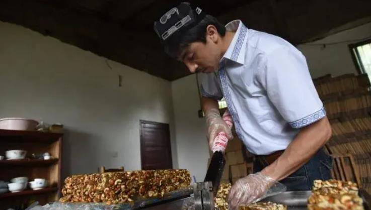 在新疆,切糕已经成为了当地人日常生活中不可或缺的美食之一,不仅受到当地人的喜爱,也受到了全国各地游客的欢迎。因为其口感独特,健康营养,同时也代表了新疆地方的文化特色。