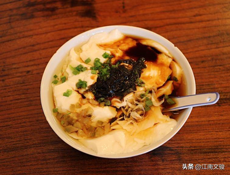 以著名的无锡豆腐花为例,在制作过程中添加了老抽、大葱、紫菜、虾米、芥末粉、白糖、香油等调味品,深受无锡群众喜爱。无锡市中心的崇安寺步行街与上海城隍庙、南京夫子庙、苏州玄妙观并称为江浙四大美食聚集地。