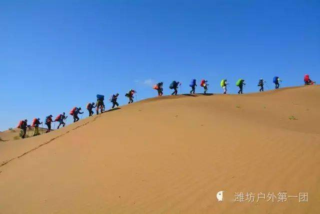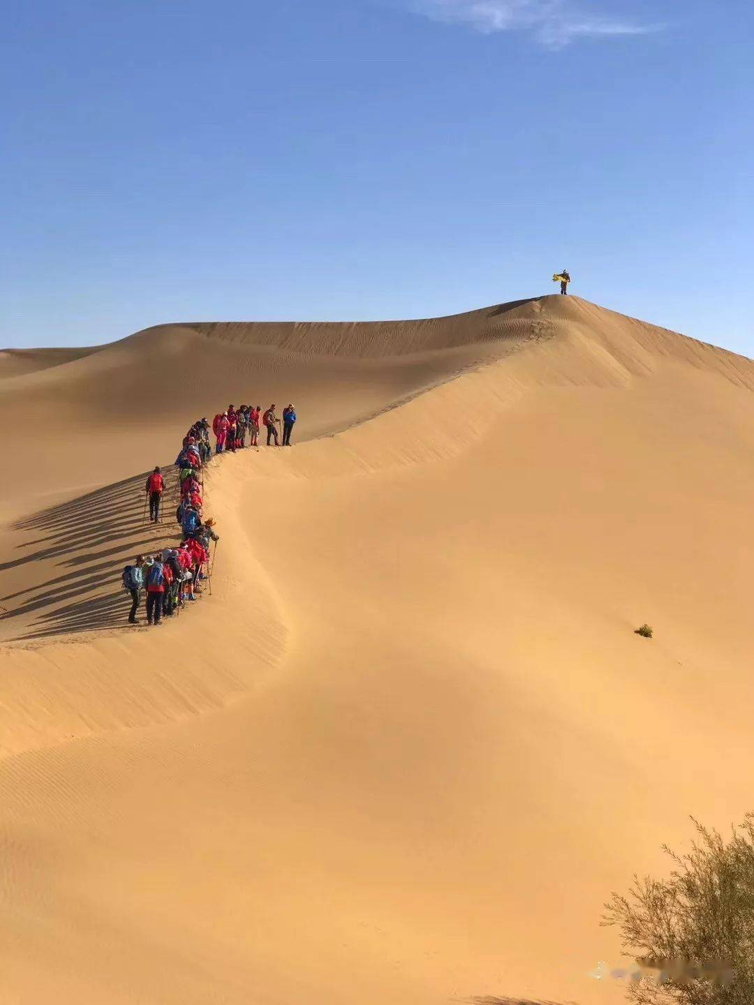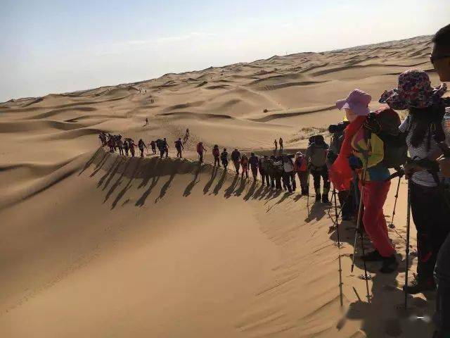 7、上坡时行走最好选择前面人的脚印走,跟走在台阶上差不多,利用手杖的支撑,会很轻松的翻越沙丘。