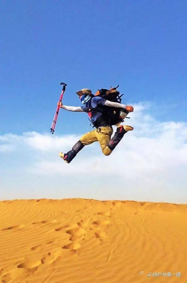 6、沙地里行走:背包负重行走时经常要翻越沙丘,为了给双腿减轻承重,用带大雪栏的双杖辅助行走会起到事半功倍的效果,尤其是上坡,会为双腿分担至少四分之一的承载力,使身体延迟疲劳,也提高了行进速度。