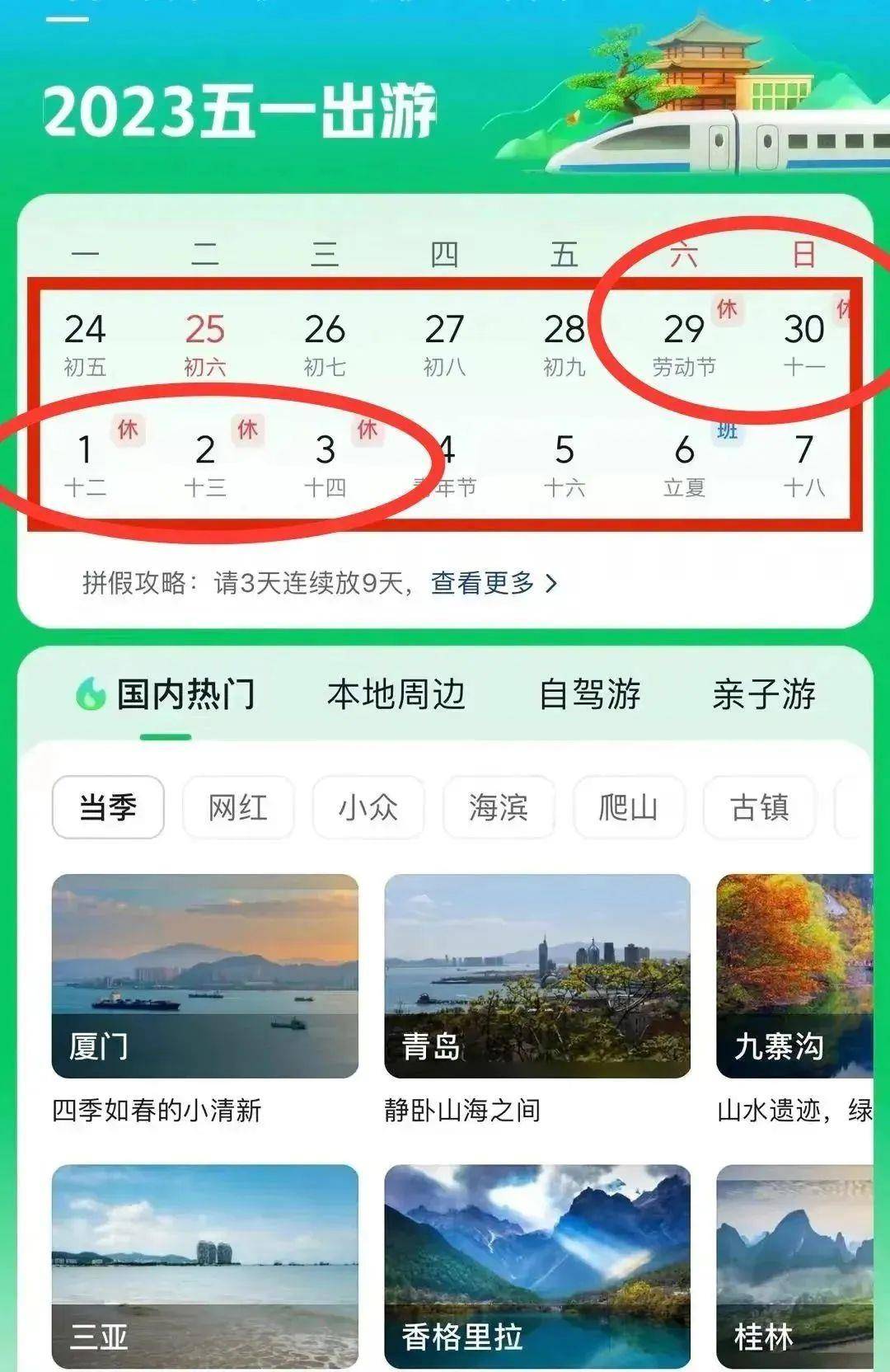 [2]五一假期临近,全国热门旅游城市名单出炉。最受欢迎的10个城市是:北京、上海、南京、杭州、西安、长沙、成都、广州、重庆和厦门。