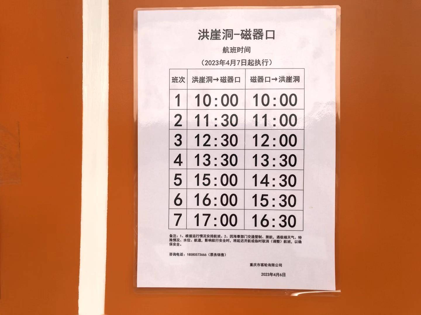 4月14日,据我走访,这条线路恢复开航,因为13日开始水位缓慢上升,14日达到开航标准,但虽然恢复开航,但一直没有消息发布,很多还是不知道,所以游客略少,跟4月9日完全没法比。但据重庆市气象局消息,《重庆日报》4月14日发布。4月15日起,重庆进入汛期。上游下雨,河水开始上涨,嘉陵江水位将继续上涨。然而,目前全国各地都在下雨。还是比较少,所以水位不要涨得太高,两河游船也不会航行。一到大雨季,洪水就停航了。