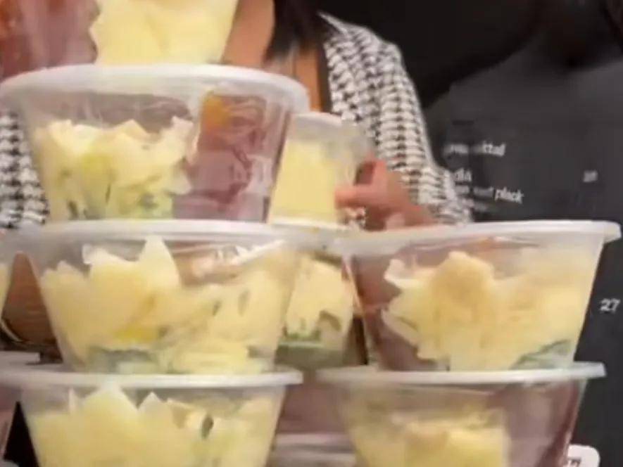 “这凉皮是什么时候做的?”景区工作人员指着凉皮盒问道。
