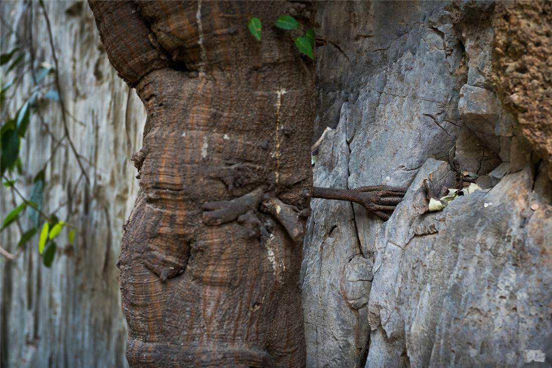 其实这菩提树的环境很不好。它凭借着顽强的生命力,深入岩壁,顽强地生存下来,从而诞生了这样一只美丽而神秘的“手”。