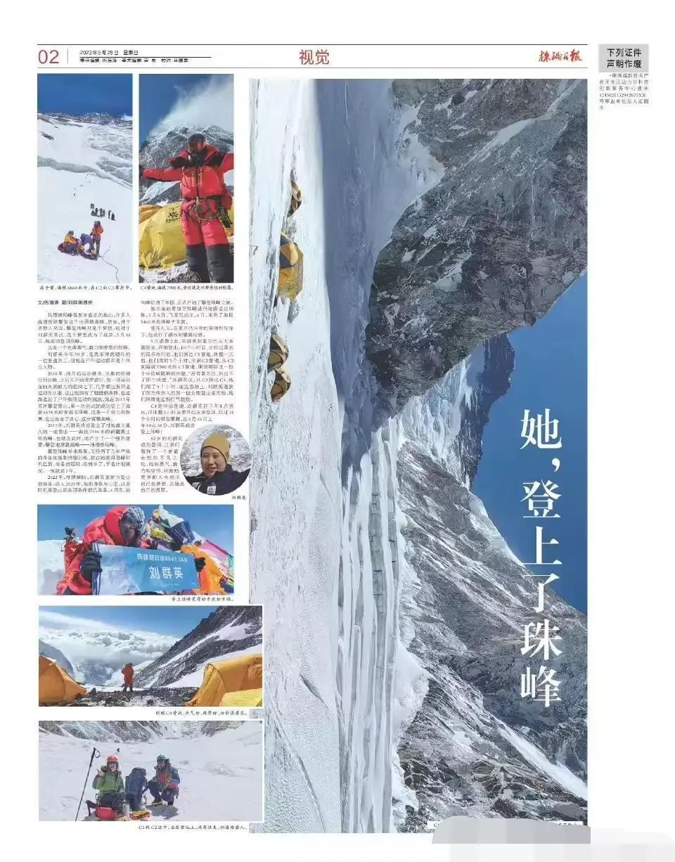 来自湖南的刘女士成功登顶珠穆朗玛峰,成为当地的新闻人物。他被多家媒体追踪采访,一举成为当地新闻人物。