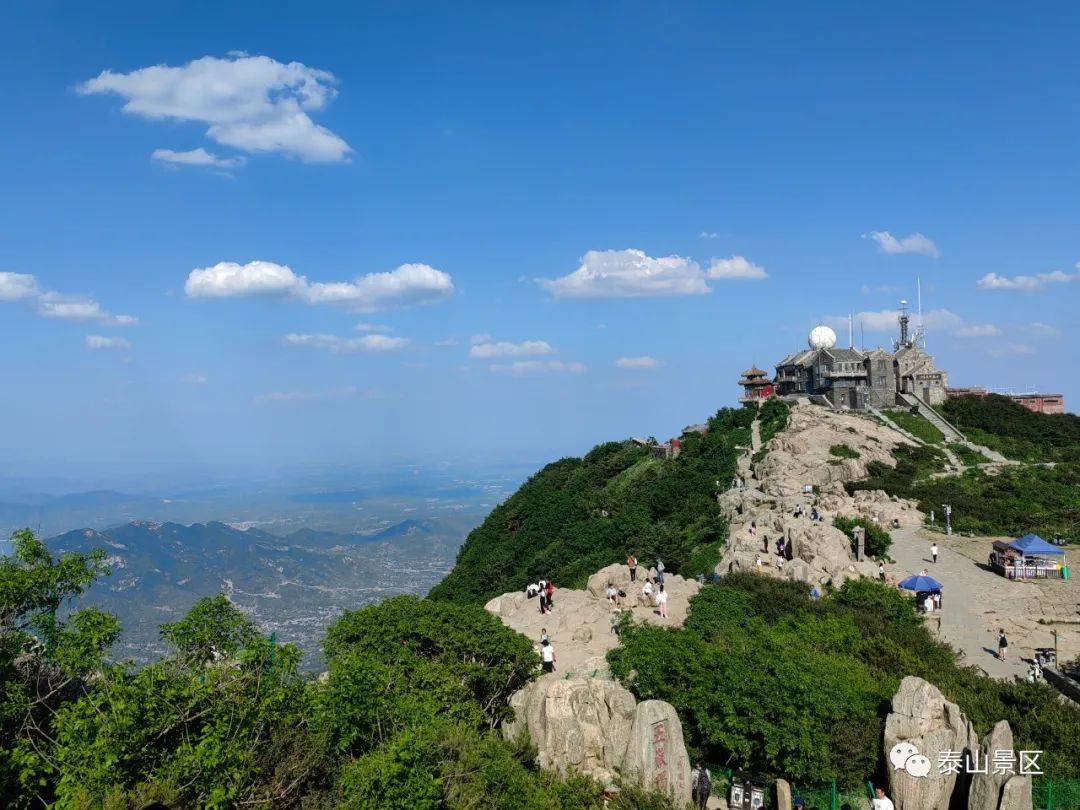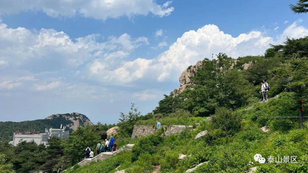 漫步泰山之巅,远观流云悠然,近看苍翠明朗,静听鸟鸣啾啾,人生惬意非常。