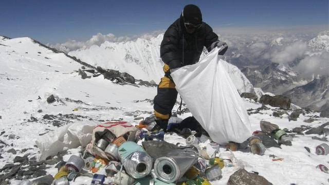 夏尔巴人还有一个“珠峰环保大使”的角色。攀登珠峰时留下的垃圾,大部分都是自己带走的。