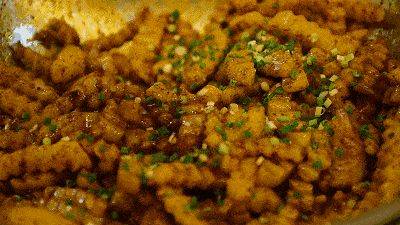 把成型后的豆腐,捏碎与葱花佐料调味,团成丸子下锅炸,就成了豆腐圆子。外皮焦脆,内里绵软,蘸着糊辣椒的蘸水吃,唇齿生香。