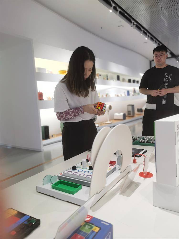 一个看上去普通的魔方,六面都连接了传感器,还有属于自己的APP。每当转动魔方,它便能实时计时,并记录玩家走的每一步,从而不断优化步骤,提升技能。