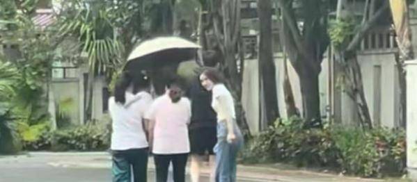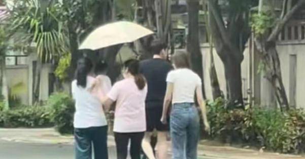 从这位网名拍摄的照片中,我们可以看到这对夫妻和两名中年妇女一起散着步。由于这两名中年妇女的身份不明,暂时无法判断两人到底是保姆还是双方的母亲。因此,我们暂时用阿姨来代替她们的名字。