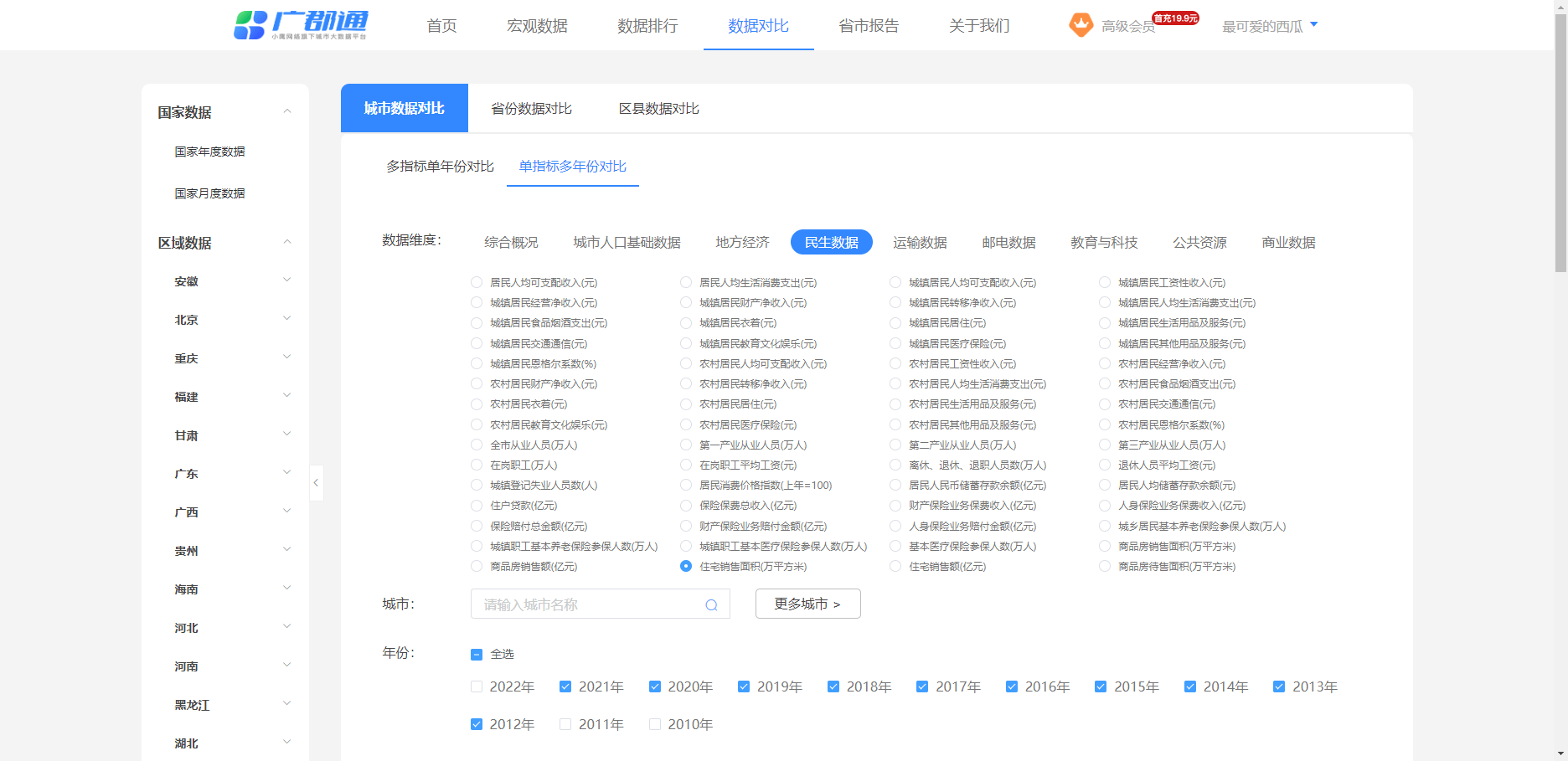 广郡通(guangjuntong.com)是一个城市数据平台,可以查询城市对比数据。