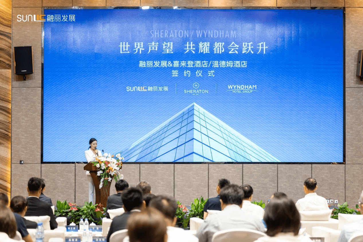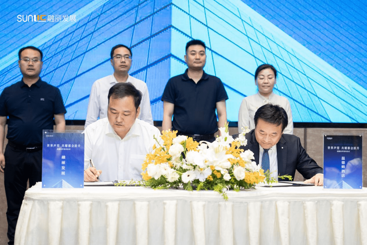 6月11日上午,融丽发展与两大重磅国际五星级酒店——喜来登、温德姆酒店的战略合作签约仪式在咸阳正式举行,中共咸阳市秦都区委书记景雪峰、咸阳市秦都区人民政府区长杜靠民、咸阳高新区党工委副书记、管委会主任毛建荣、咸阳高新区管委会办公室主任赵海峰、温德姆酒店集团首席发展官王磊、温德姆酒店集团发展经理赵春林、喜来登酒店咸阳总经理刘江燕、融丽发展总经理李勇哲、融丽发展副总经理姚飞、融丽发展副总经理孙东明、丽彩集团副总裁帅晓睦等相关领导和嘉宾出席了该签约仪式,这也意味着咸阳市首次实现了两大国际五星级酒店的合作进驻。万豪集团旗下的世界顶尖奢华品牌代表——“喜来登酒店”,以及全球规模最大的酒店集团温德姆酒店集团代表品牌——“温德姆酒店”的正式战略签约,未来将塑写咸阳市的地标性建筑和服务标杆。以国际五星级酒店的标准,为咸阳这座城市缔造更为瞩目的商务、会务、人文服务名片。
