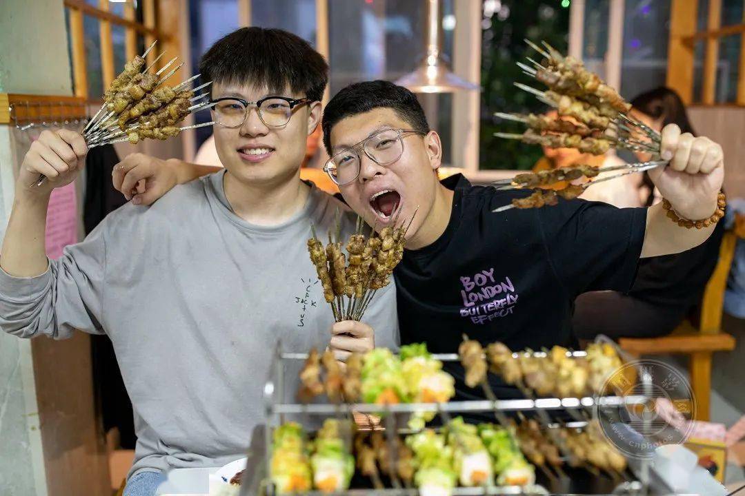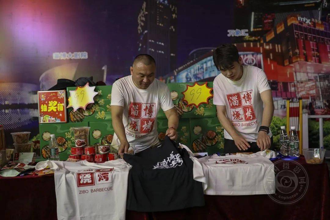 穿着“进淄赶烤”的文化衫,吃着烧烤、喝着扎啤的人们。