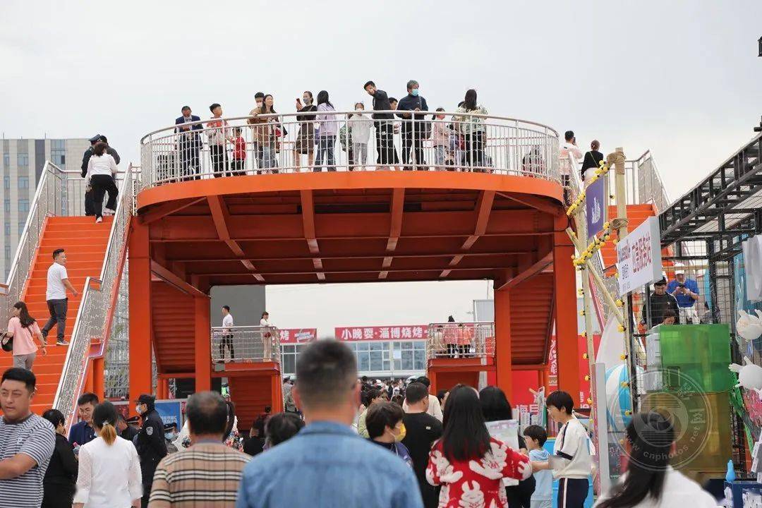 依托海月龙宫物流港,20天时间新建一座占地100亩、可同时容纳一万人的烧烤城,中间的观景台很气派。