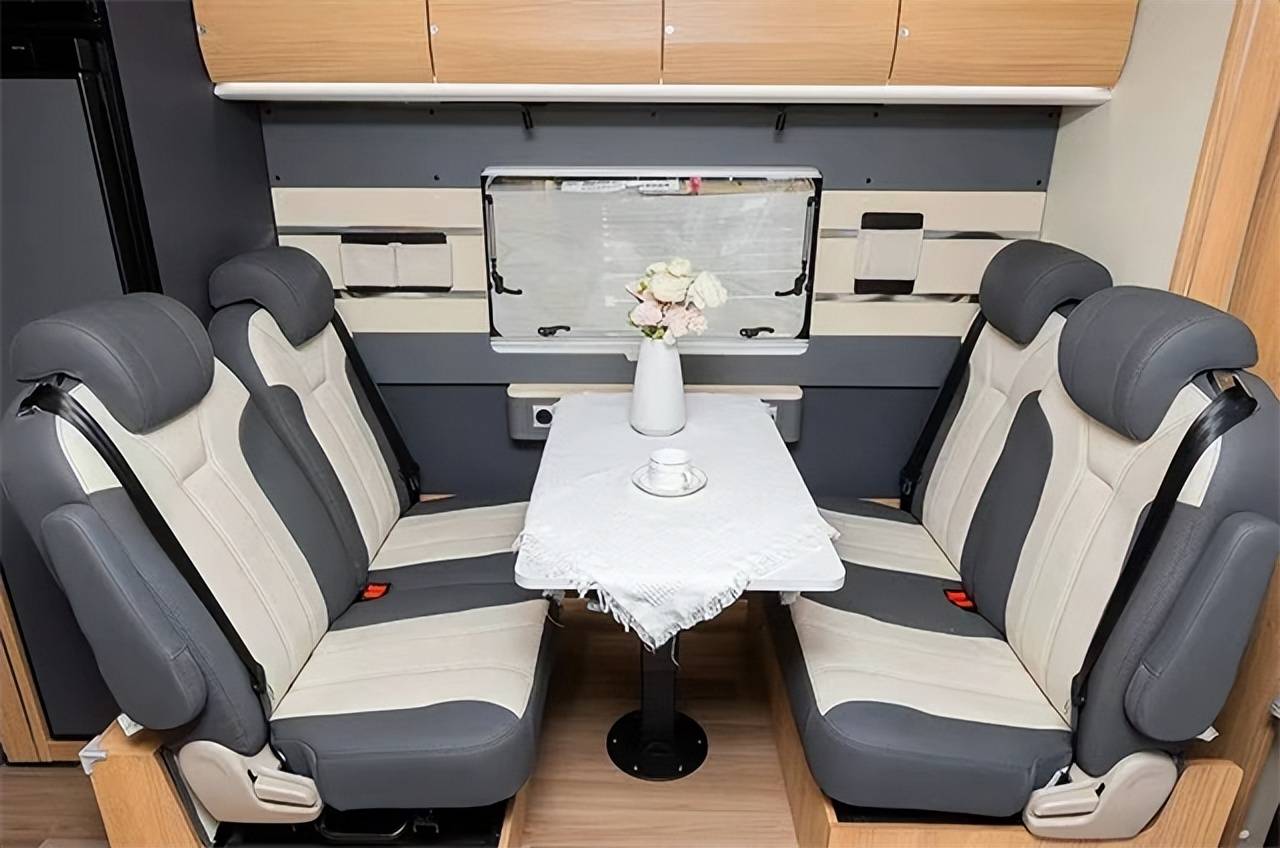驾驶室内,主副驾驶座椅皮革包覆,同时两个座椅均采用悬浮座椅,在驾驶辅助方面,配置有多功能方向盘、定速巡航、ABS防抱死系统、车机手机互联、GPS导航、胎压监测、ESP、行车记录仪、电动加热加宽外后视镜、倒车雷达等,让出行驾驶更加智能安全。双150A行车发电机,为房车带来更充足的续航。