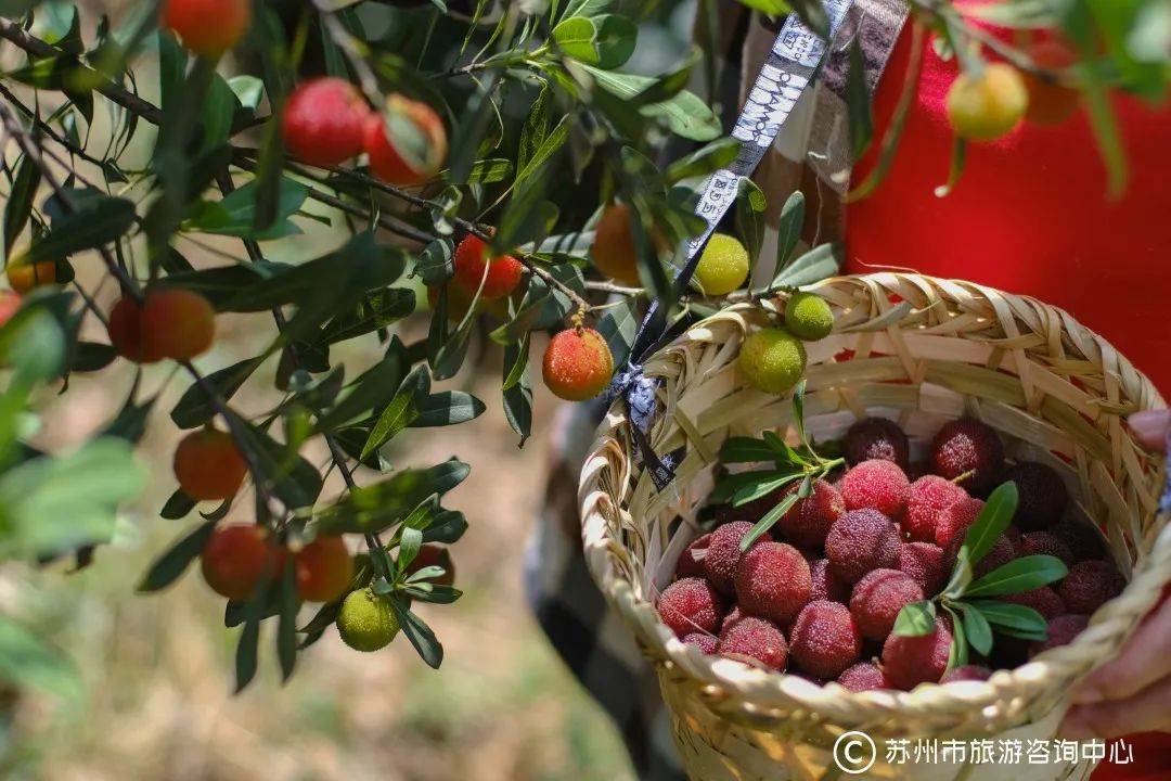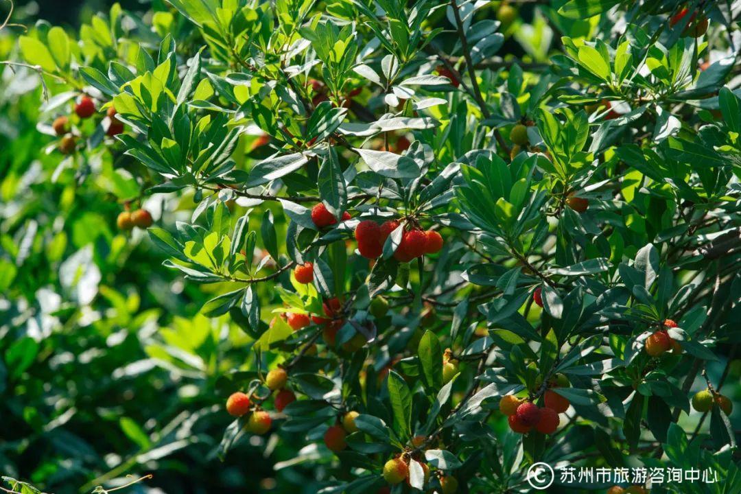 东山镇地处太湖之滨,受独特的太湖小气候环境的影响,东山细蒂杨梅形成了独一无二的口感——汁多味甜、风味独特、果形饱满,色紫而娇滴,是东山名副其实的“红娇娘”。