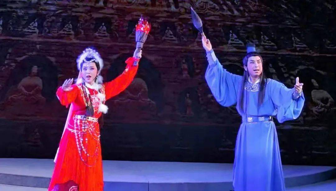 在甘肃省陇剧院百姓戏剧场舞台上,一部宏伟的陇剧版“敦煌画卷”徐徐展开。“狼烟起,刀兵动,祁连冰水血染红,铁骑踏碎敦煌梦,塞外长驱西夏兵……”由省陇剧院青年演员段宏娟饰演的回鹘王族之女格丽莎扮相秀美,一开嗓就以明快、嘹亮的唱腔“先声夺人”。随后,青年演员谭强饰演的赵行德在一招一式间,将文弱书生的才气和重情重义拿捏得恰到好处。两人意外相遇的戏份更是将互诉衷肠演绎得入木三分,令人动容。