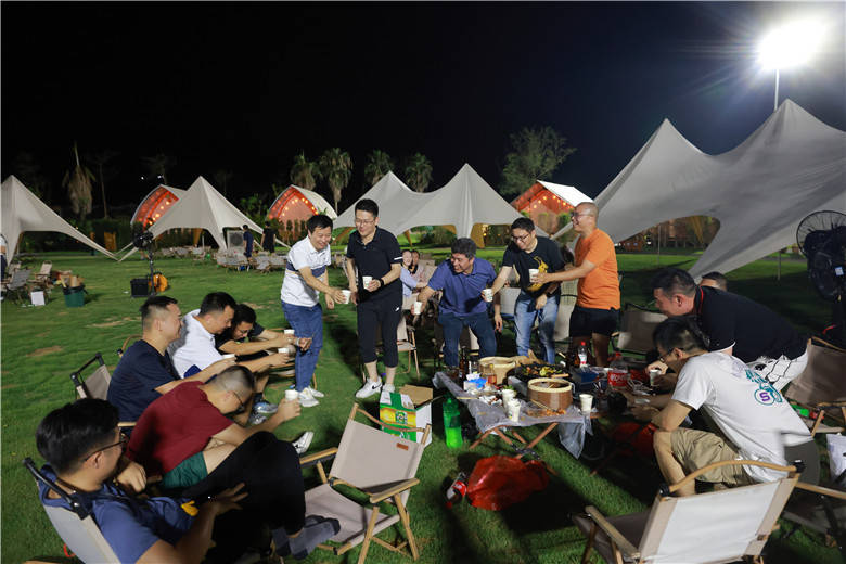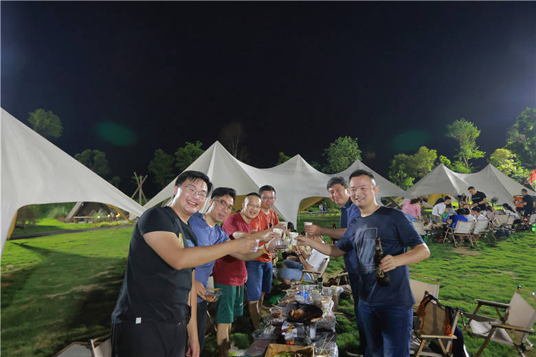 旺林艺术花园的夜是怎么样的景致,随便用手机一拍就美爆镜头,朋友圈一发立即引来围观点赞无数。清澈的夜空中,星星眨着眼睛,月亮如同一叶小舟,蝉叫虫鸣,自带灯笼的萤火虫在举办灯光节,碧绿的草地上搭着排列整齐的天幕帐篷,诱人的烤肉香味从帐篷里飘了出来,舞台上,歌手在唱着当下年轻人喜欢的时尚歌曲,游客们围着熊熊的篝火四周跳舞,享受着不眠夏夜的狂欢。
