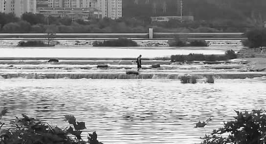 有人涉水过河。