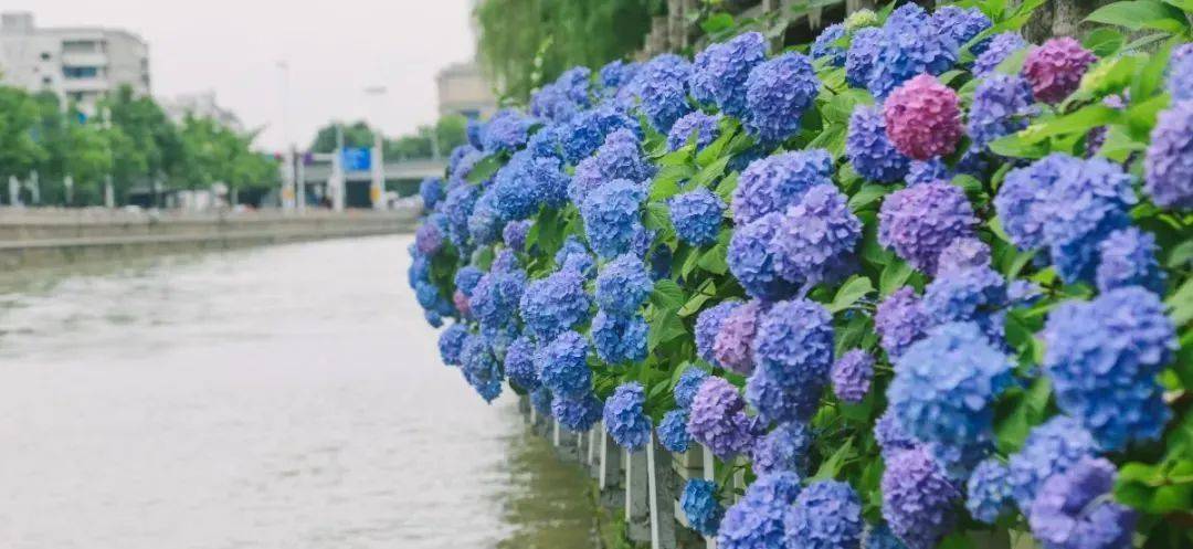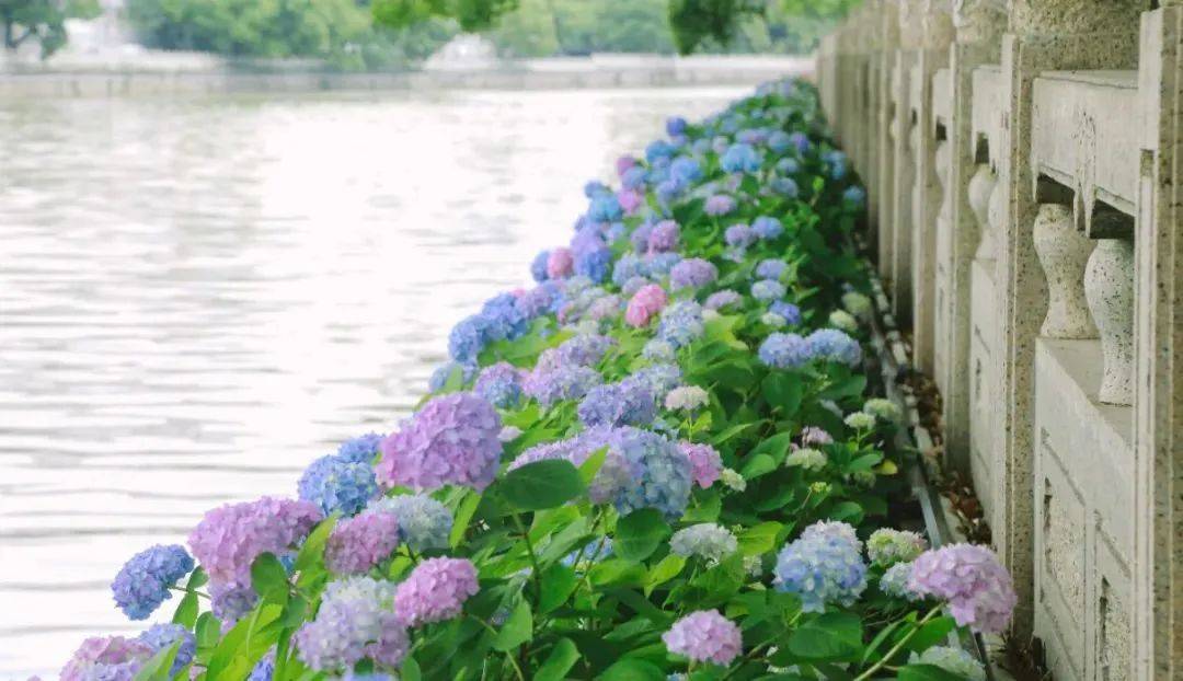 不得不说,六月的东坡公园,当真绝色。林木蔚秀,水石清奇,更有绣球花倾情加盟。小桥、凉亭、假山也极具氛围感,加之整条大运河绕园东流,使其极富江南特色。