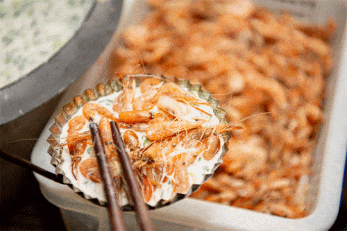 虾饼是一定要去尝试的。炸好的虾饼金灿灿、香喷喷,刚出锅太烫,只能边呼气边咬。入口后,烫、脆、酥、香、鲜、糯……滋味可口,层次丰富,随走随吃,身心满足。