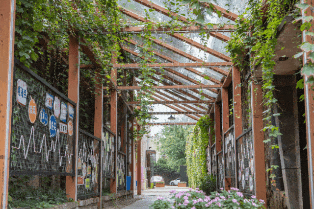 此外,这里也极其出片,随处可见工业遗存和文化遗迹,都是最好的背景。第五毛纺厂旧大门是热门打卡点,引来游人如织。绿荫之下的三堡街,阳光洒落,漫步其中,有一种时光倒流、国营老厂上下班的错觉。
