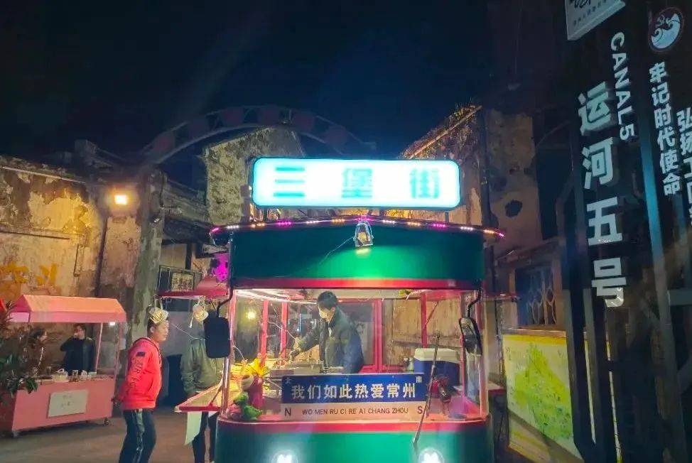 到了晚上,这儿更为热闹,夜市的展开,燃起了人间烟火气。华灯初上,千年古运河的三堡街,既有江南水乡的古韵,又有现代都市的繁华。沿街的汽车后备箱集市,兼具颜值与创意;运河五号内的各式摊位,怀旧复古、市井气儿十足。