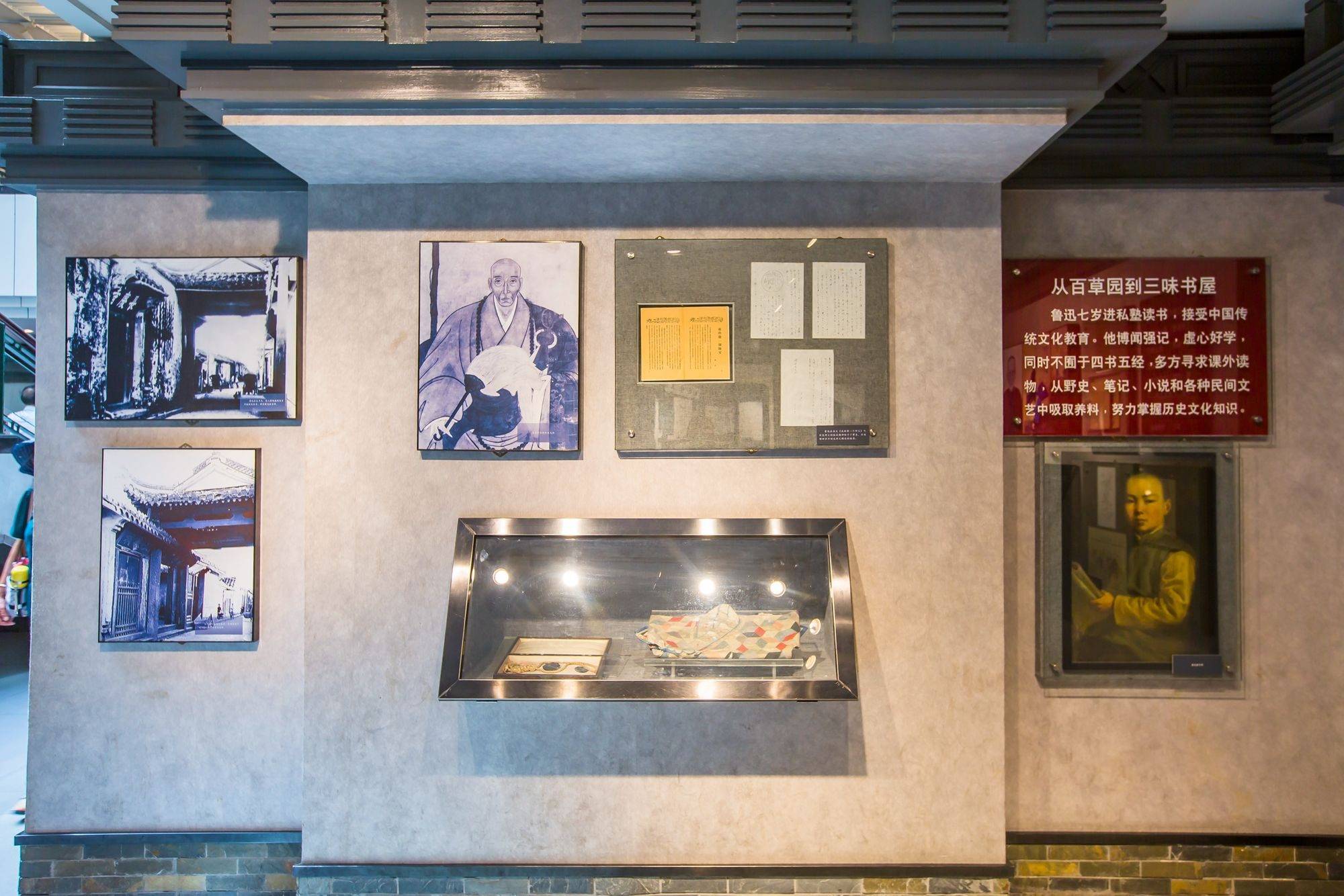 展馆展示了大量图片影像资料和书籍实物,其中在故乡绍兴的经历占了很大篇幅。鲁迅一生有三分之一时间都是在绍兴度过的,许多年少经历都被写作成书。