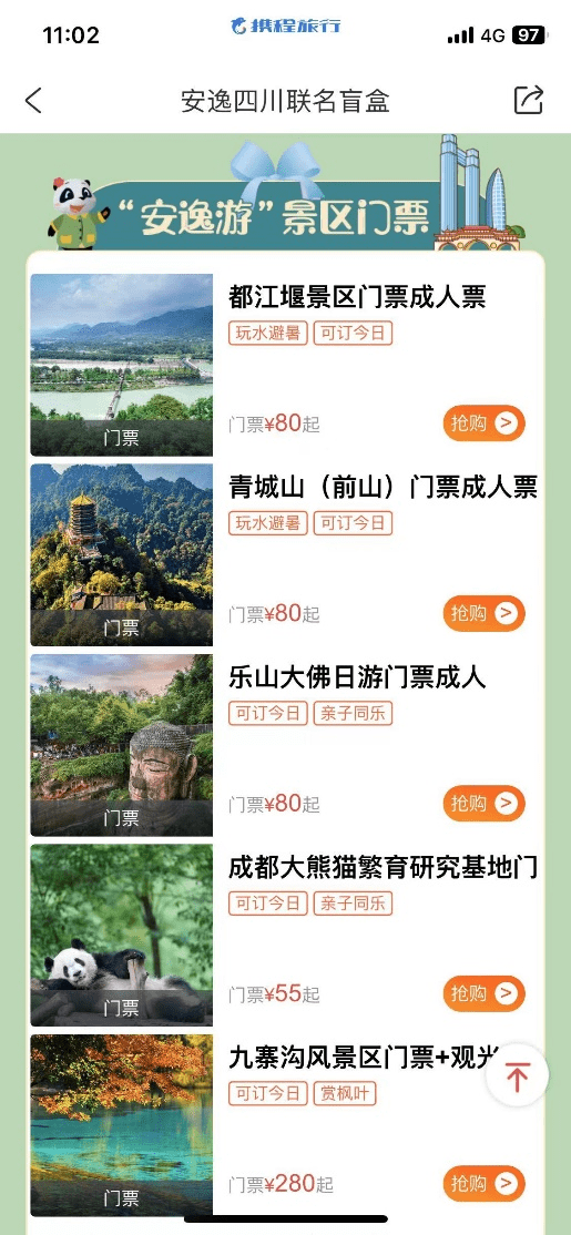 此外,携程制作并上线了"趣游安逸"路书,并研发了"安逸"系列文旅产品盲盒。通过在携程首页的强劲曝光及多方资源位的展示,同步联动携程站内外的推广资源,借助携程的全媒体营销矩阵进行传播推广,为2023四川文旅产业高质量发展持续赋能。