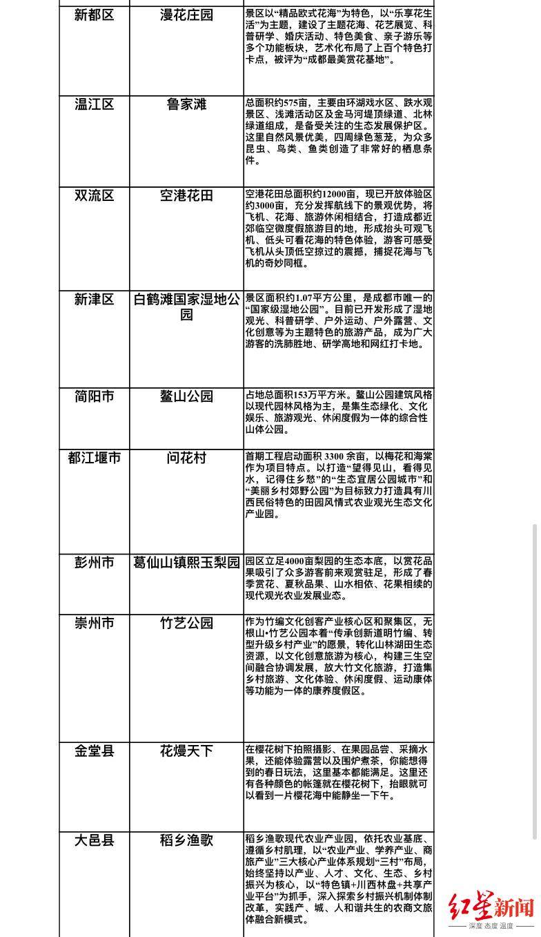 近日,由成都市公园城市建设管理局指导,成都市风景园林学会、成都中国青年旅行社有限公司联合主办的“2023市民春季最喜爱的20个踏青地”评选活动,经过申报推荐、初审遴选、线上投票及现场评议等阶段,评选结果已正式出炉,兴隆湖生态公园、活水公园、花乡农居等20个踏青地入选市民春季最喜爱的踏青地。